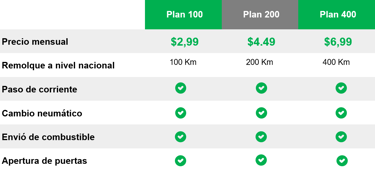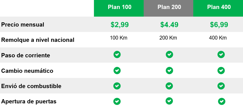 Ofrecemos una tabla de precios clara para cada asistencia disponible en Carplus. Si ya eres cliente nuestro, estos valores tendrán un 25% de descuento.