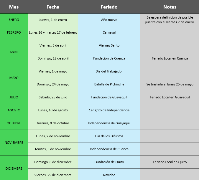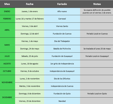 Descubre los feriados nacionales de Ecuador en 2026 con la información necesaria para tu planificación