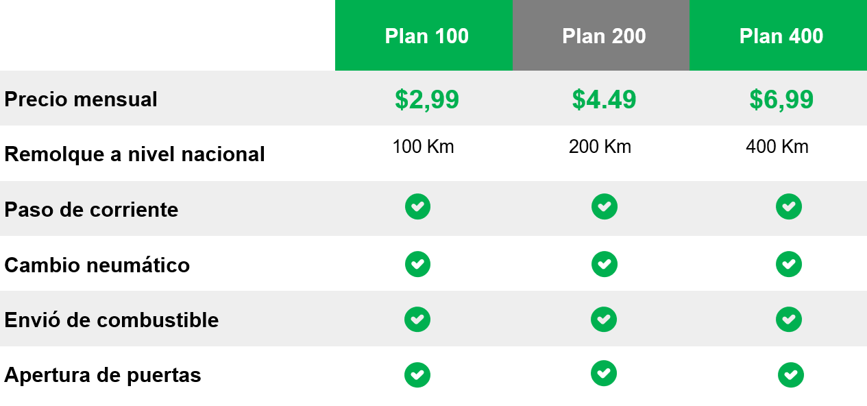 Ofrecemos una tabla de precios clara para cada asistencia disponible en Carplus. Si ya eres cliente nuestro, estos valores tendrán un 25% de descuento.